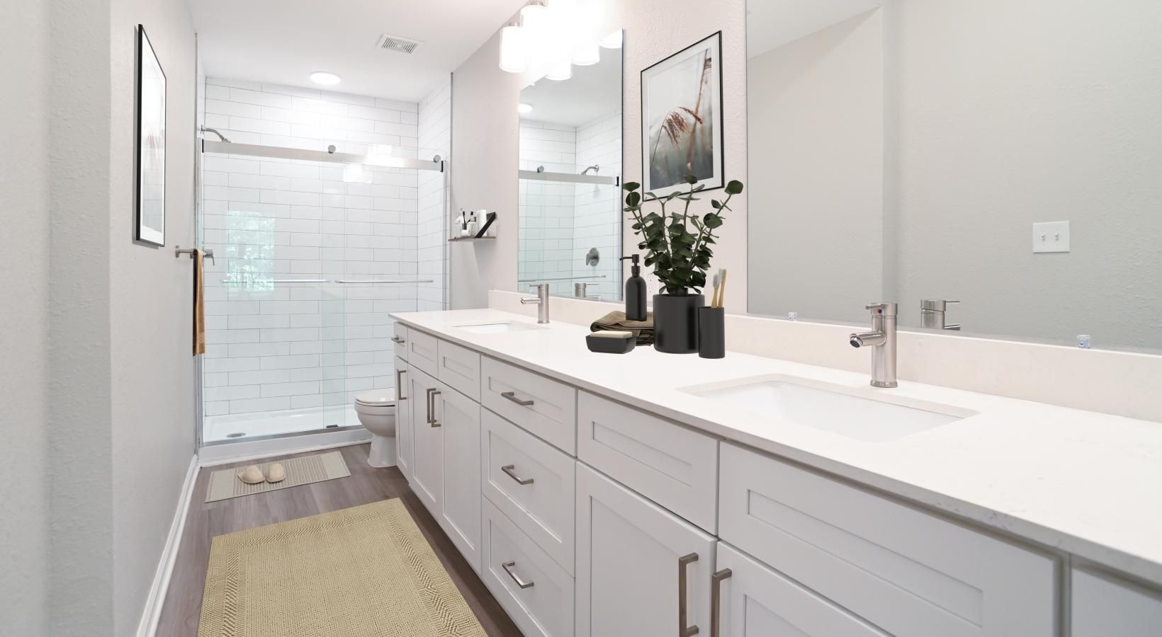 • a bathroom with a large mirror