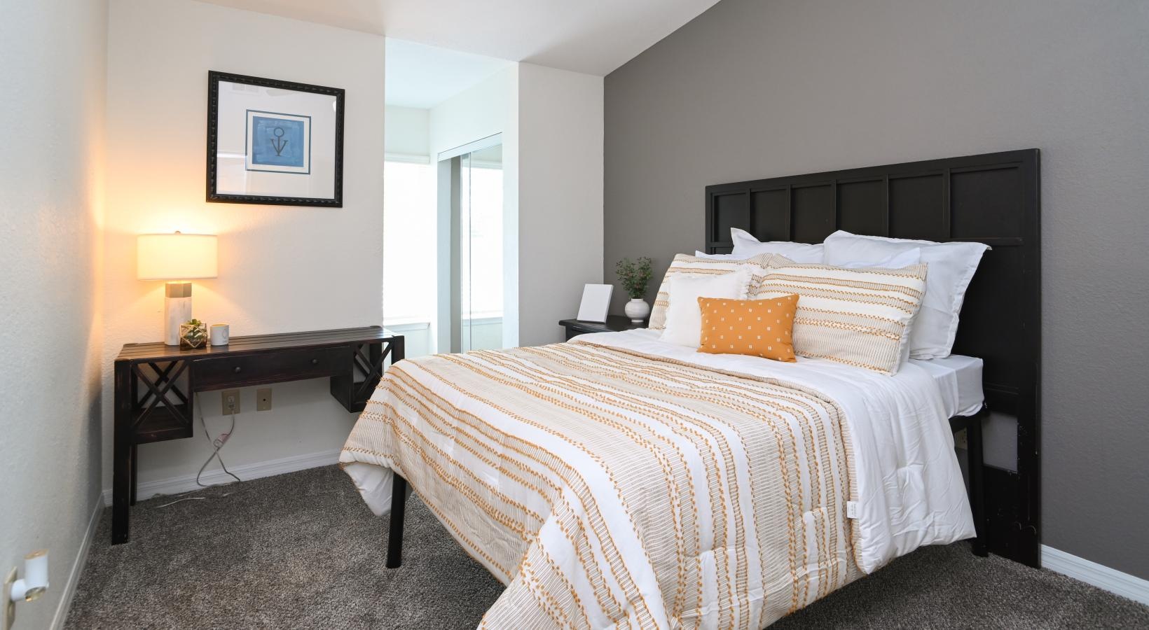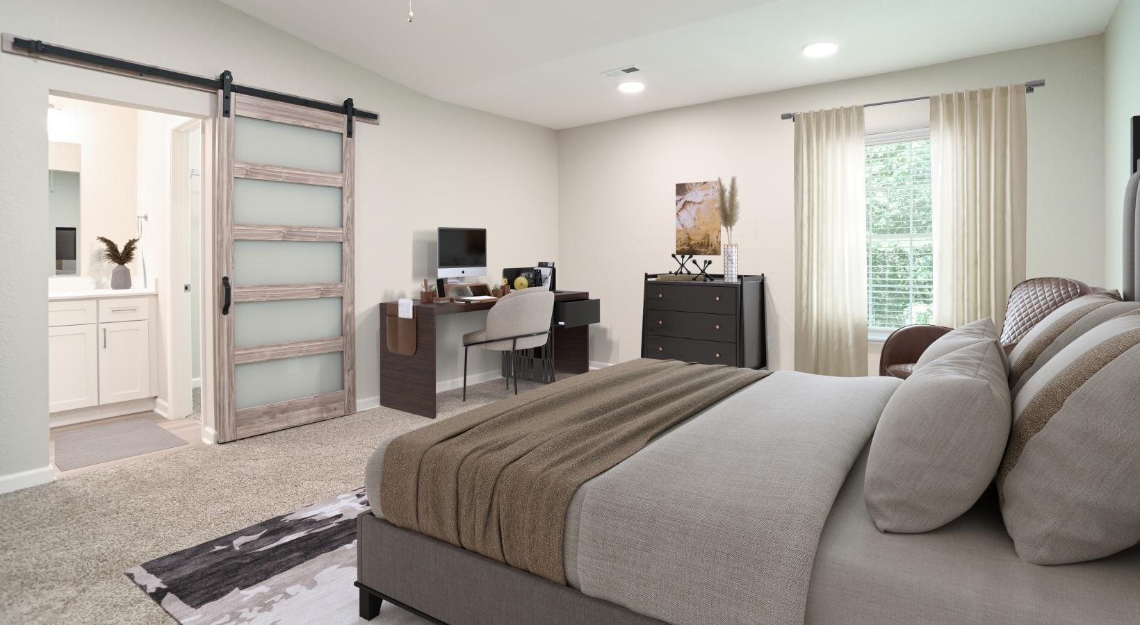 • a bedroom with a bed and a desk