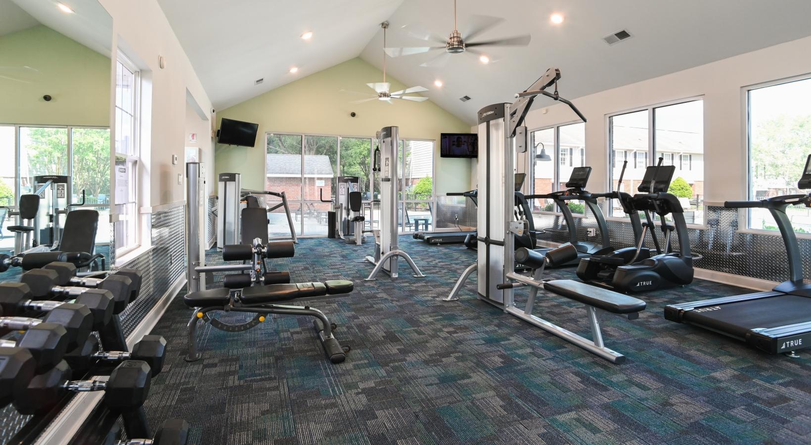 • a gym with exercise equipment