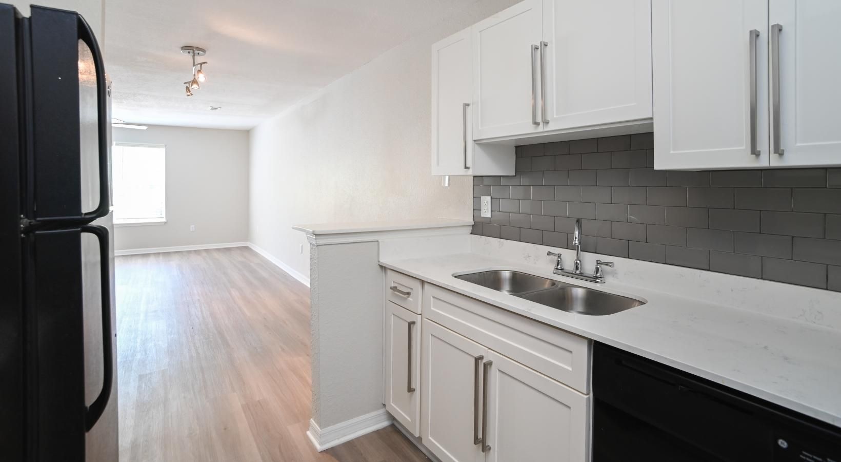 • a kitchen with white cabinets